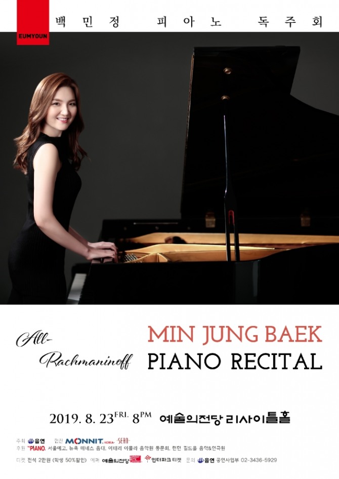 지난 7월 12일 뉴욕 카네기홀에서 리사이틀 데뷔를 성황리에 마치고 21년째 매년 여름 뉴욕 맨해튼에서 열리는 세계 피아니스트들의 축제인 ‘인터내셔널 키보드 인스티튜트 & 페스티벌(IKIF)’에 교수진으로 초청돼 2주 동안 세계적인 대가들과 함께 어깨를 나란히 하며 연주와 마스터클래스를 가지며 찬사를 받은 피아니스트 백민정. 그녀가 오는 8월 23일 오후 8시 예술의전당 리사이틀홀 무대를 열정적인 연주로 채운다.
