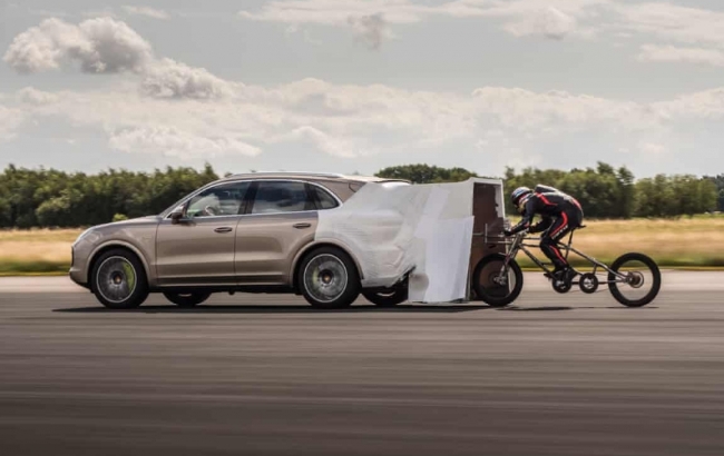 노스요크셔 주 엘빙턴 비행장 활주로에서 열린 기록회에서 닐 캠벨 씨는 자신이 디자인 한 자전거를 타고 포르쉐 카이엔에 견인되어 최고속도에서 분리 된 200m의 측정구간을 자력으로 시속 280.57㎞의 세계 최고 기록을 마크했다.