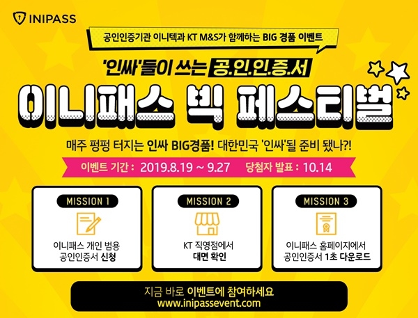 이벤트 결과는 오는 10월 14일 홈페이지를 통해 발표될 예정이며, 이외에도 주요 KT 직영매장과 이니패스 공식 SNS에서 다양한 프로모션과 게릴라 이벤트가 진행된다.