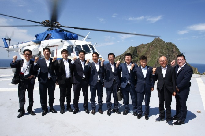 더불어민주당의 설훈 최고위원과 우원식·이용득·박찬대 의원, 무소속 손금주·이용주 의원 등 국회 독도 방문단은 이날 오전 11시께 독도를 찾았다.