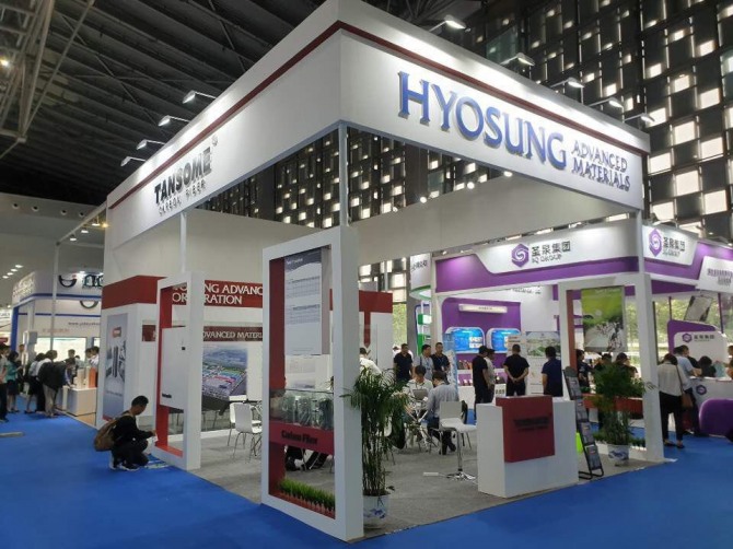 차이나 컴포짓 엑스포 2019에 참가한 효성첨단소재 부스 전경. 사진=효성그룹 제공이미지 확대보기