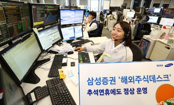 이미지 확대보기12일 업계에 따르면 삼성증권은 올해 추석 연휴에도 고객들이 해외주식을 편리하게 거래할 수 있도록 '해외주식 데스크'를 평일과 똑같이 운영한다.