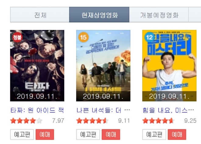 극장가의 대목인 추석 연휴를 겨냥해 한국 영화 세 편이 동시에 맞붙는다. 지난 11일 동시 개봉한 ‘타짜: 원 아이드 잭’(타짜3), ‘나쁜녀석들: 더 무비’, ‘힘을 내요, 미스터 리’가 그 주인공이다.