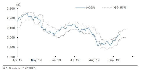 이미지 확대보기이번주(16일-20일) 주식시장은 주요국 통화완화정책에 영향을 미칠 전망이다. 한국투자증권은 2000포인트-2080포인트를, 키움증권은 1950-2050선을 제시했다.
