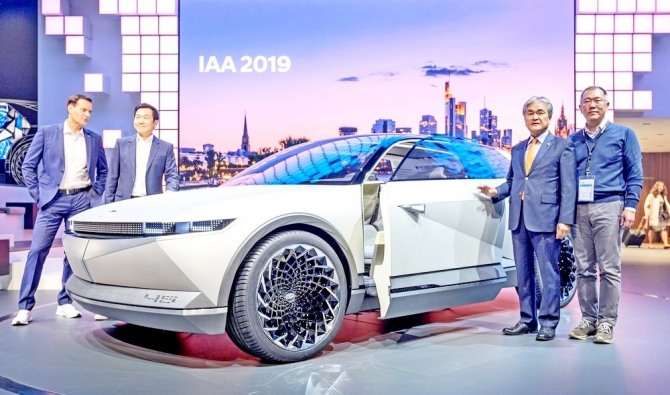 이를 감안해 정 수석부회장은 이달 12일(현지시간) 막을 올린 독일 프랑크푸르트모터쇼에 'EV 콘셉트카 45'를 세계 최초로 공개했다.