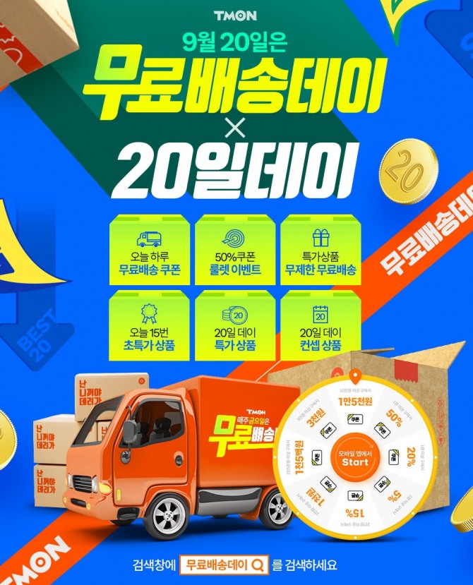 티몬, ‘무료배송데이x20일데이’ 동시 시행