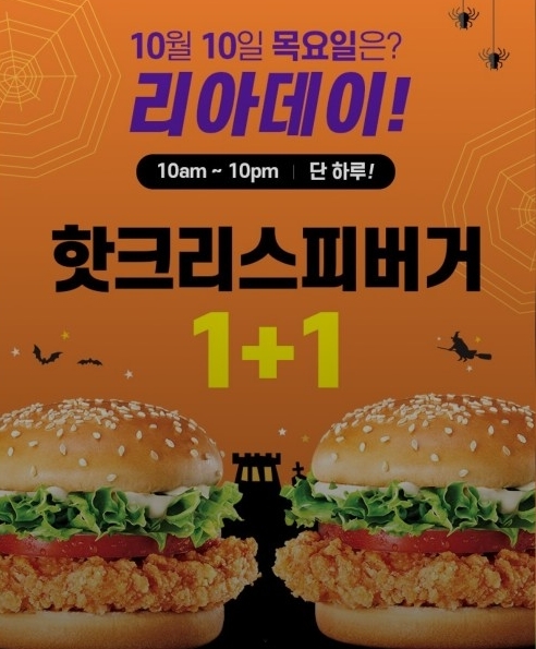 이와 별도로 이날 자정(24시)까지 롯데리아 앱에서도 핫크리스피버거를 1+1으로 판매하다. 해당 쿠폰은 10월 16일까지 사용할 수 있다.
