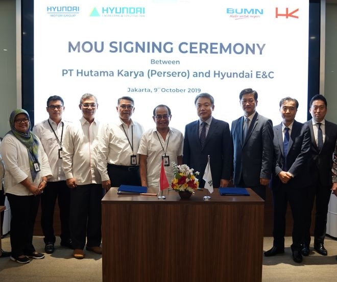 이미지 확대보기현대건설은 9일(현지시간) 자카르타에서 정진행 부회장이 참석한 가운데 인도네시아 국영건설사 후따마 까리야(PT Hutama Karya)와 인도네시아 정부 주요 국책사업 협력을 위한 양해각서(MOU)에 서명했다.