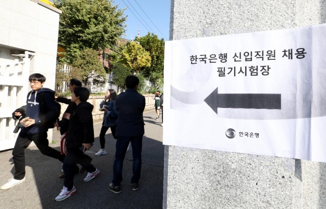 한국은행은 이날 오전 9시부터 서울 용산고에서 전공시험과 논술 필기시험을 치렀다.
