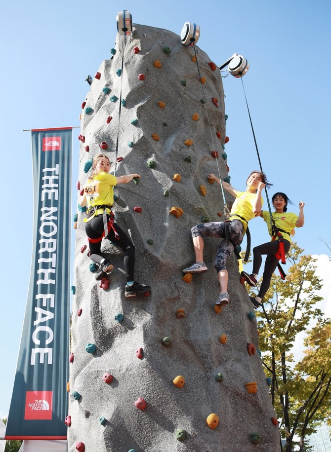 [포토뉴스] “인공암벽 정도야 가뿐하죠”…노스페이스 애슬리트팀, 시범 경기 호평