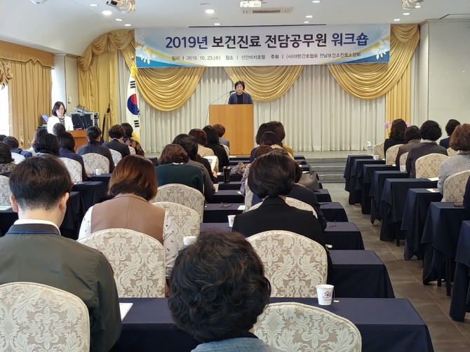 이미지 확대보기전남보건진료소장회(회장 손정실)는 23일 목포신안비치호텔에서 전남과 광주 보건진료소장 대표 70여명이 참석한 가운데 ‘건강노화(Healthy Aging)를 위한 건강한 지역사회 만들기’ 워크숍을 개최했다.