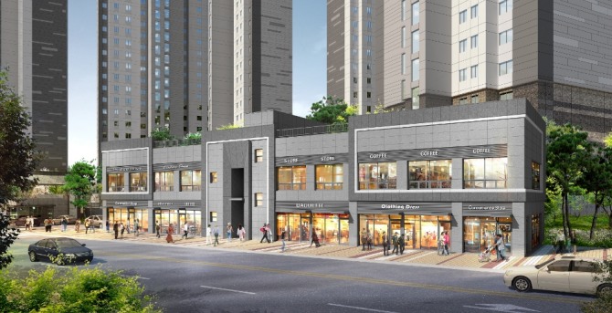 대우건설이 31일 분양하는 '밀양강 푸르지오' 단지 내 상가의 투시도. 사진=대우건설이미지 확대보기
