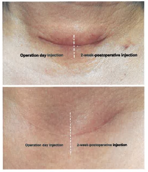 연구진은 갑상선 제거 수술을 받은 환자를 대상으로 수술 후 발생한 흉터 부위의 중간 지점을 기준으로 한쪽에는 수술 당일 나보타를 투여하고 반대쪽에는 수술 2주 후 투여했다. 수술 후 2, 4, 12, 24주가 지난 시점에 두 부위의 흉터 개선 효과를 비교 평가했다.
