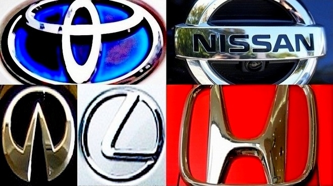 한일 갈등으로 일본 완성차의 국내 판매가 크게 줄었다. (왼쪽 위부터 시계 방향)도요타, 닛산, 혼다, 렉서스, 인피니티 엠블럼. 사진=글로벌이코노믹 정수남 기자