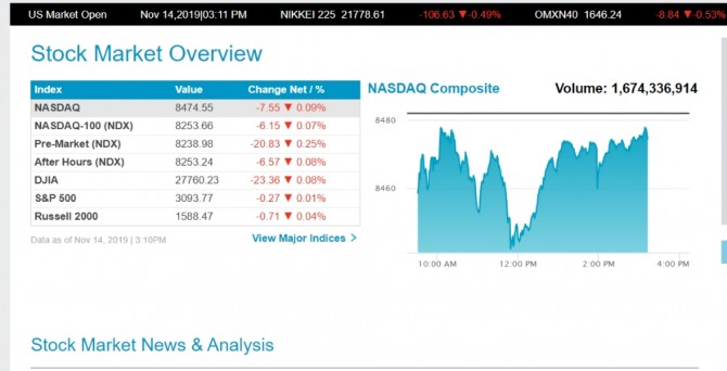 Data as of Nov 14, 2019 | 3:10PM