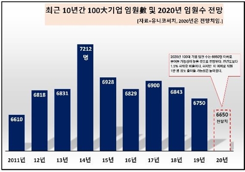 지난 2017년부터 줄어들기 시작한 100대 기업 임원 수가 내년에는 올해보다 100명 줄어든 6650명 수준으로 축소될 것이란 전망이다.