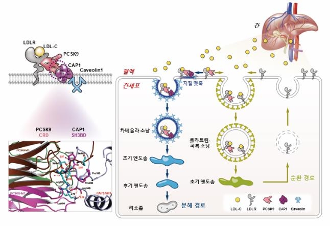 연구팀은 이번 연구에서 PCSK9가 LDL수용체를 파괴하는 메커니즘을 연구했다. 그 결과 CAP1이 PCSK9가 LDL수용체를 파괴하는 과정에 필수적이라는 사실을 발견했다.