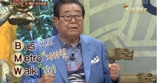 송해는 한 방송에서 “자가용은 원래부터 타지 않았다. 걷기운동이 최고”라고 말했다.