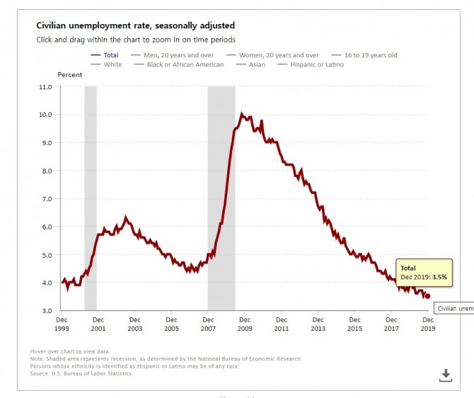 이미지 확대보기미국 노동부는 지난 10일(현지시각) 비농업 부문 일자리가 지난해 12월 14만 5000개 증가했으며 실업률은 3.5%를 기록했다고 발표했다.