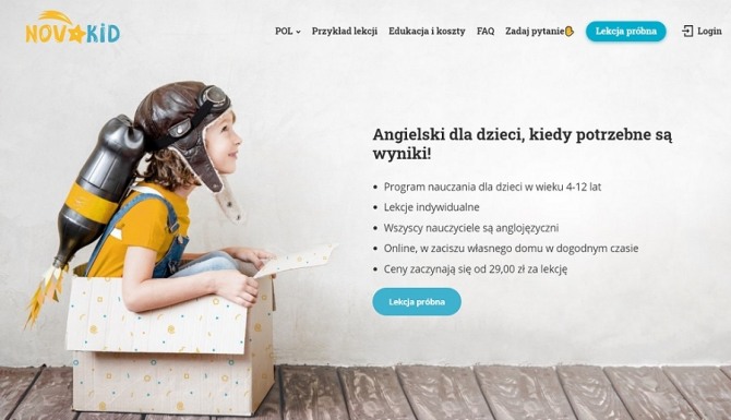 러시아 기업가 맥심 아자로프가 3년 전에 폴란드를 기반으로 설립한 노바키드는 회원가입 어린이들이 영어권 국가에 거주하고 있는 원어민 강사(tutor)와 실시간 영상통화 수업을 제공한다. 강사들 모두 아동교육 자격증을 갖춘 전문가임을 장점으로 내세우고 있다.
