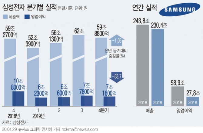 반도체 불황 삼성전자·SK하이닉스 영업익 대폭 감소 영향