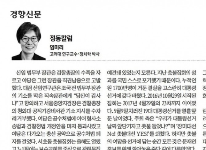 임 교수는 지난달 28일 경향신문에 ‘민주당만 빼고’라는 제목의 칼럼을 기고했다. 민주당은 이 칼럼이 공직선거법 위반 소지가 있다며 지난달 13일 서울남부지검에 이해찬 당대표 명의로 임 교수와 경향신문 칼럼 담당자를 고발했다.