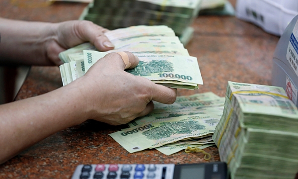한 베트남 은행원이 10만동 지폐를 세고 있는 모습. 사진=로이터