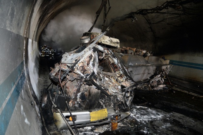 이미지 확대보기18일 전북지방경찰청과 전북소방본부에 따르면 전날 낮 12시 23분께 터널에서 발생한 사고는 입구에서 약 100m 떨어진 지점에서 발생했다. 앞서가던 군용 장갑차를 실은 화물차량과 몇 대의 차량 간에 접촉사고가 있었고 이로 인해 터널은 정체를 빚었다.