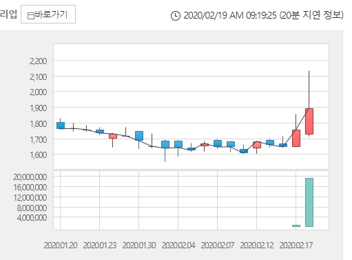 18일 7.69% 급등하며 1890원에 마쳤다.