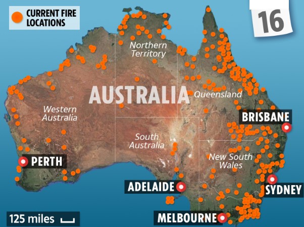 - (Queensland) 250만 헥타르 규모의 화재가 발생해 48가구의 주택이 피해