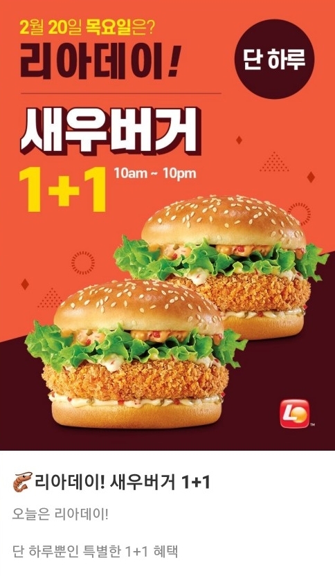 이미지 확대보기리아데이는 롯데리아가 매월 특정일에 높은 할인율을 적용하거나 제품을 추가 증정하는 이벤트로 이날 오전 10시부터 오후 10시까지만 한다.