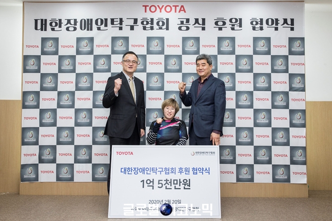 이미지 확대보기한국토요타는 지난 20일 대한장애인탁구협회에서 1억5000만 원을 후원하는 협약식을 실시했다고 22일 밝혔다.