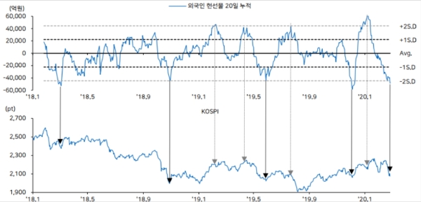 외국인 순매도는 코로나19 확산을 기점으로 눈덩이처럼 불어났다.