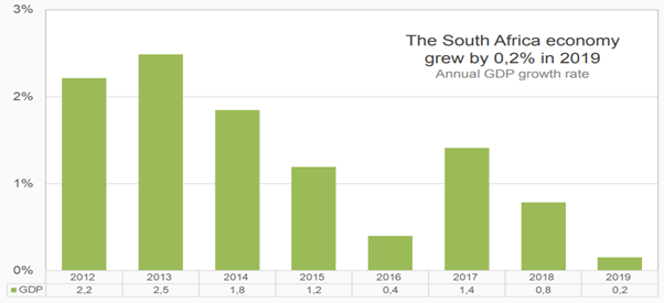 ㅇ (경제성장) 3월 3일(화) 남아공 통계청은 2019년 남아공 경제성장률이 0.2%에 불과했다고 발표함.