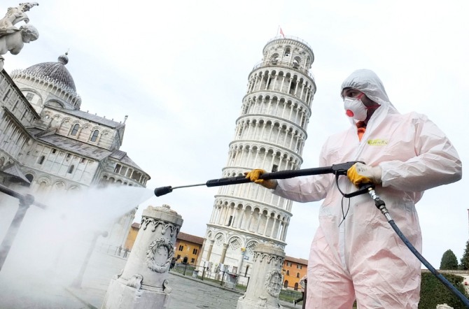 코로나19로 관광객 끊긴 이탈리아 피사의 사탑. 사진=연합뉴스