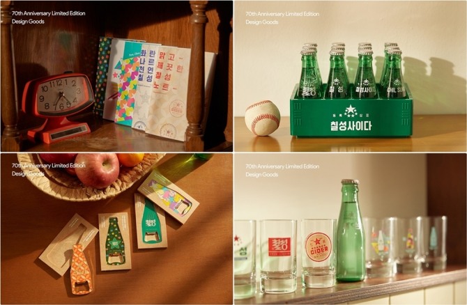 이미지 확대보기롯데칠성음료가 국민 탄산음료 ‘칠성사이다’ 출시 70주년을 맞아 한정판 굿즈(Goods, 특정 인물이나 브랜드와 연관된 상품)를 선보였다.