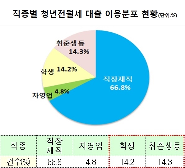 금융위에 따르면 작년 5월 27일 금융위와 주택금융공사, 은행권이 협약을 통해 총 1조1000억 원을 목표로 출시된 이후 지난 3월 20일까지 10개월간 청년 2만5000명에게 총 1조2000억 원이 지원됐다. 이용자의 평균대출금액은 전세대출 5009만 원, 월세대출 591만 원이었으며 금리는 시중 전세대출 평균금리보다 0.33%포인트 저렴한 평균 2.57%였다.
