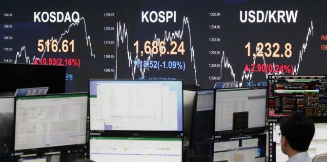 이미지 확대보기28일 한국거래소에 따르면 코스피 전체 시가총액은 1524조3841억 원에서 1138조4603억 원으로 385조9238억 원 줄었다. 코스닥 시가총액은 246조8944억 원에서 188조2442억 원으로 58조6502억원 줄었다.