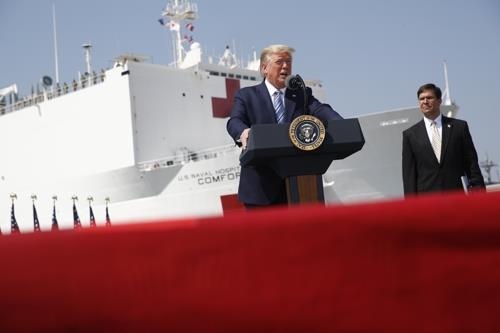 트럼프 대통령은 또 미 해군 병원선 '컴포트'(Comfort)호 출항식 연설을 통해 "배송을 하거나 단순 경유 등 뉴욕에서 나오는 트럭 운전사 등에게는 적용되지 않을 것이다. 무역(상품이동)에도 영향을 미치지 않을 것"이라고 밝혔다.