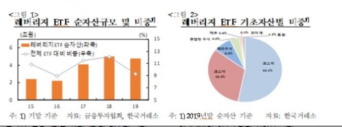 김수진·신영석 과장은 "향후 레버리지 ETF는 거래의 편의성 등의 장점을 바탕으로 꾸준한 성장세를 보일 것"이라며"주식시장 등 기초자산 시장의 변동성에 미치는 영향에 대해 계속 예의주시할 필요가 있다"고 설명했다.