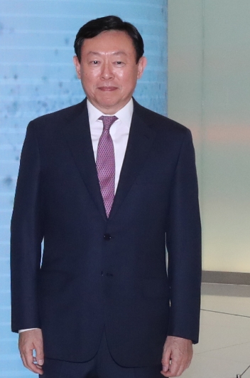 신동빈 롯데그룹 회장이 지난해 5월 롯데월드타워에서 기념촬영을 하고 있다.  사진=뉴시스이미지 확대보기