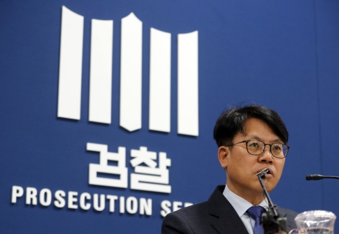 김관정 대검찰청 형사부장이 9일 서울 서초구 대검찰청 기자실에서 처벌 기준이 한층 강화된 '성착취 영상물 사범 사건처리 기준'을 브리핑하고 있다.사진=뉴시스