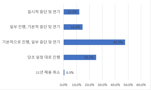 2020년 3월 말 시점 코로나19 감염 확산이 채용활동에 미치는 영향