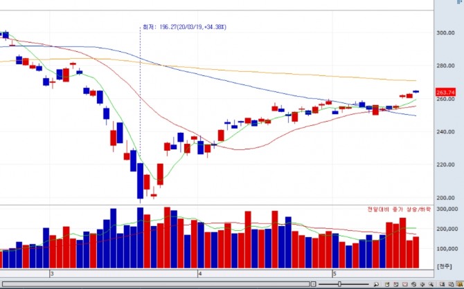 이미지 확대보기코스피200 6월물 선물은 전일대비 1.40포인트(0.53%) 상승한 263.55를 기록했다.