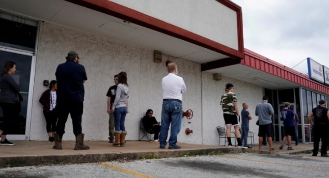 이미지 확대보기미국 노동부는 16일로 끝난 지난 주 243만 8000명이 일자리를 잃어 새로 실업수당을 신청했다고 21일 밝혔다. 이로써 코로나 사태로 경제활동이 중단된 이후 9주간 총 3860만 명이 일자리를 잃었다.