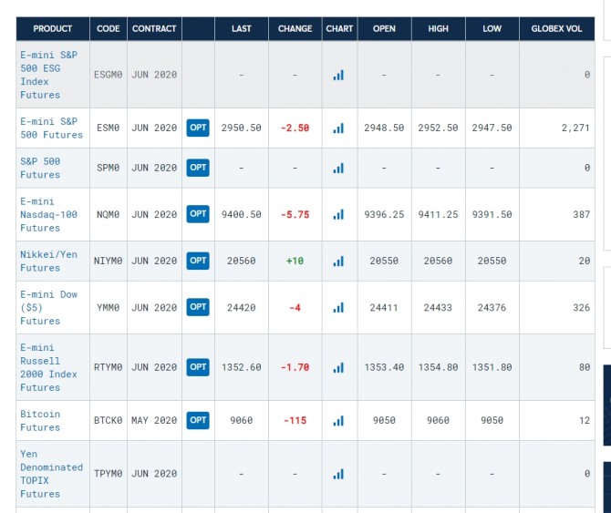 미국 뉴욕증시 Futures 선물 시세표= 시카고 선물거래소