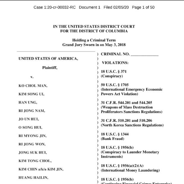 기소장은 또 미국 재무부가 지난 2017년 고철만을 북한 관리로 제재 목록에 올렸다는 점도 지적했다.