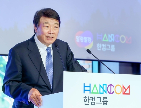 29일 경기도 가평군 청리움 내 한컴드론 교육센터에서 열린 한컴아카데미 드론 교육 파트너십 체결 행사에서 김상철 한글과컴퓨터그룹 회장이 인사말을 하고 있다. 사진=한글과컴퓨터이미지 확대보기