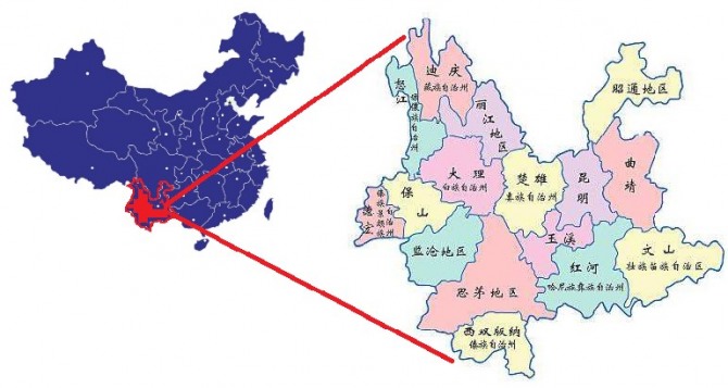 중국 서부 내륙에 위치하고 있는 윈난성(云南省)은 쓰촨성, 충칭시, 구이저우성, 티벳자치구와 함께 중국의 서남지역에 속하고 있으며 미얀마, 라오스 및 베트남과 인접한 변경무역이 활성화되어 있는 8개 지급시(地级市), 8개 자치구가 소속되어 있는 행정구역이다.
