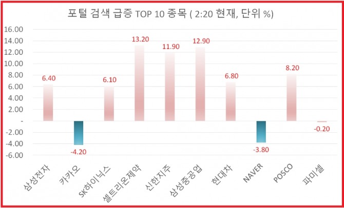 포털사 검색량 급증하는 종목은?...삼성전자, 카카오, SK하이닉스, 셀트리온제약 순